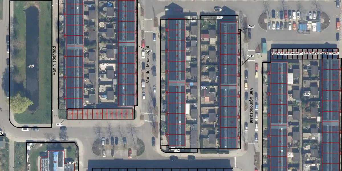 Het perceel waarop Van der Maasstraat 49 staat heeft een oppervlakte van 3427 m². Dit is een zeer groot perceel. De perceeloppervlakte wordt geregistreerd door het Kadaster. Gedetailleerde informatie over de maten van dit perceel kunt u vinden in het rapport Kadastrale kaart met maatvoering van Van der Maasstraat 49.