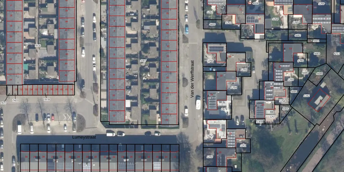 Het perceel waarop Van der Werffstraat 28 staat heeft een oppervlakte van 3415 m². Dit is een zeer groot perceel. De perceeloppervlakte wordt geregistreerd door het Kadaster. Gedetailleerde informatie over de maten van dit perceel kunt u vinden in het rapport Kadastrale kaart met maatvoering van Van der Werffstraat 28.