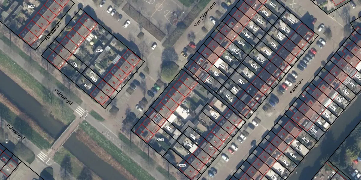 Het perceel waarop Van Dijcksbruin 48 staat heeft een oppervlakte van 1004 m². Dit is een zeer groot perceel. De perceeloppervlakte wordt geregistreerd door het Kadaster. Gedetailleerde informatie over de maten van dit perceel kunt u vinden in het rapport Kadastrale kaart met maatvoering van Van Dijcksbruin 48.