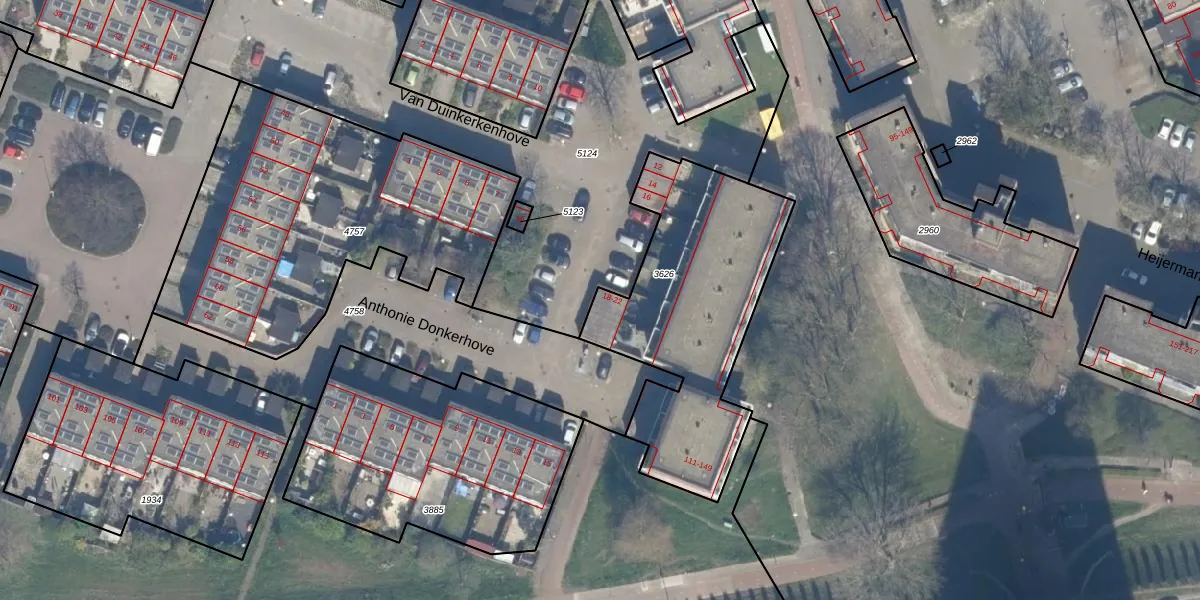 Het perceel waarop Van Duinkerkenhove 18 staat heeft een oppervlakte van 1059 m². Dit is een zeer groot perceel. De perceeloppervlakte wordt geregistreerd door het Kadaster. Gedetailleerde informatie over de maten van dit perceel kunt u vinden in het rapport Kadastrale kaart met maatvoering van Van Duinkerkenhove 18.