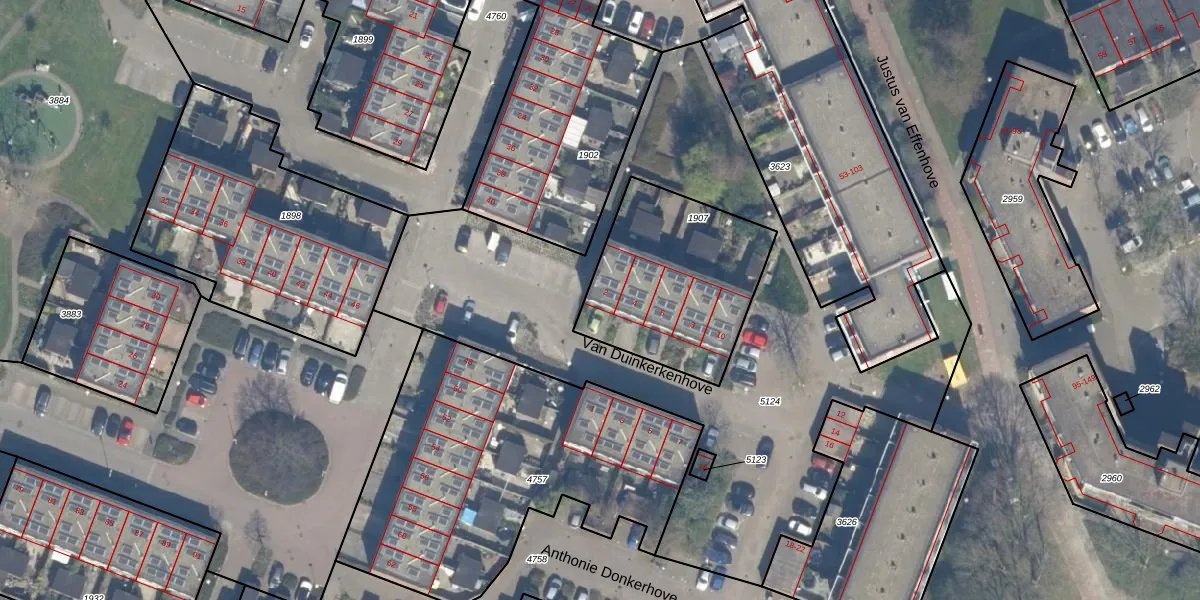 Het perceel waarop Van Duinkerkenhove 2 staat heeft een oppervlakte van 716 m². Dit is een groot perceel. De perceeloppervlakte wordt geregistreerd door het Kadaster. Gedetailleerde informatie over de maten van dit perceel kunt u vinden in het rapport Kadastrale kaart met maatvoering van Van Duinkerkenhove 2.