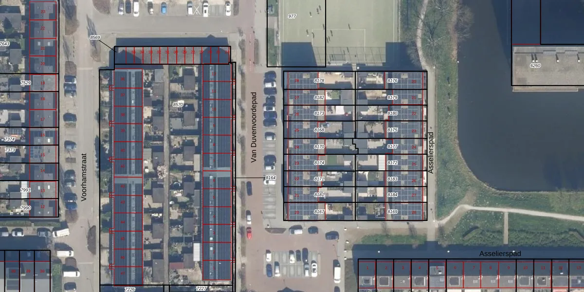 Gebruik de zoekbalk of klik op een perceel voor informatie over de adressen binnen dit perceel.