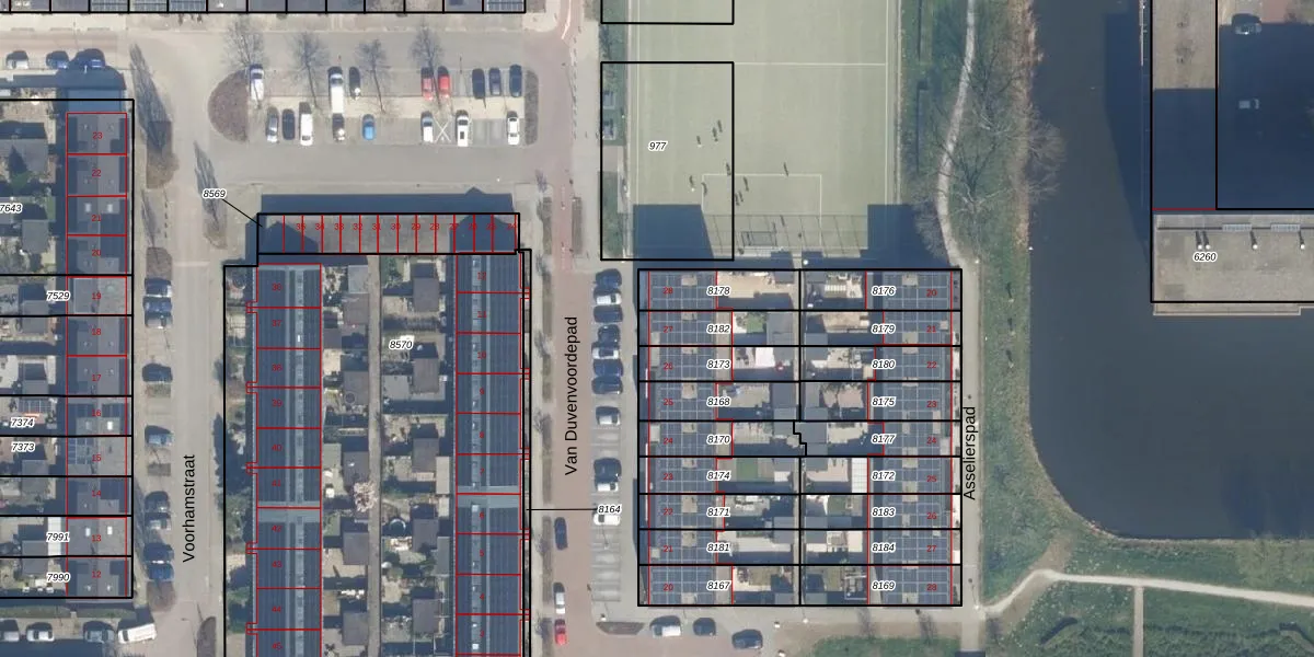 Gebruik de zoekbalk of klik op een perceel voor informatie over de adressen binnen dit perceel.