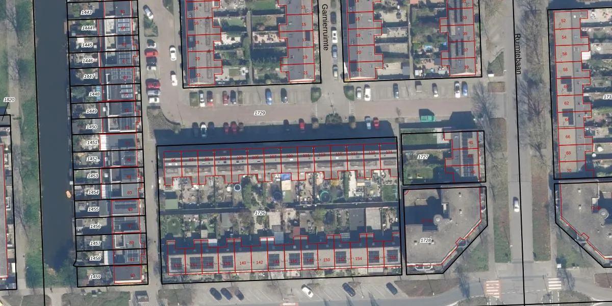 Het perceel waarop Van Embdenruimte 111 staat heeft een oppervlakte van 3540 m². Dit is een zeer groot perceel. De perceeloppervlakte wordt geregistreerd door het Kadaster. Gedetailleerde informatie over de maten van dit perceel kunt u vinden in het rapport Kadastrale kaart met maatvoering van Van Embdenruimte 111.