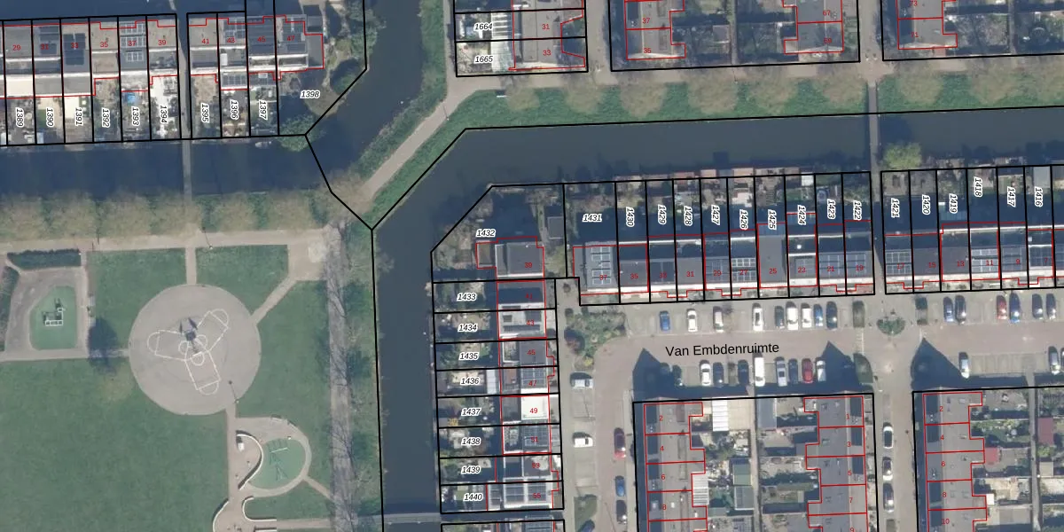 Van Embdenruimte 39 is gelegen op kadastraal perceel ZWD01A1432. Deze kadastrale aanduiding is uniek en wordt gebruikt door het Kadaster om eigendomsrechten en andere zakelijke rechten vast te leggen. Het perceel maakt onderdeel uit van de kadastrale gemeente Zegwaard.