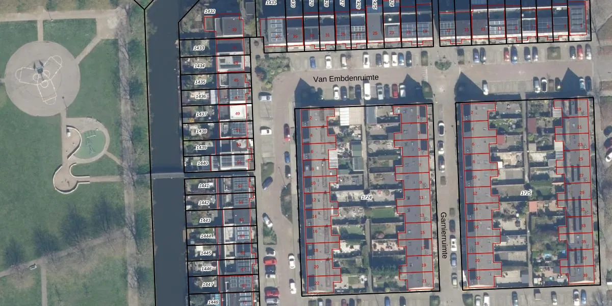 Het perceel waarop Van Embdenruimte 6 staat heeft een oppervlakte van 2763 m². Dit is een zeer groot perceel. De perceeloppervlakte wordt geregistreerd door het Kadaster. Gedetailleerde informatie over de maten van dit perceel kunt u vinden in het rapport Kadastrale kaart met maatvoering van Van Embdenruimte 6.
