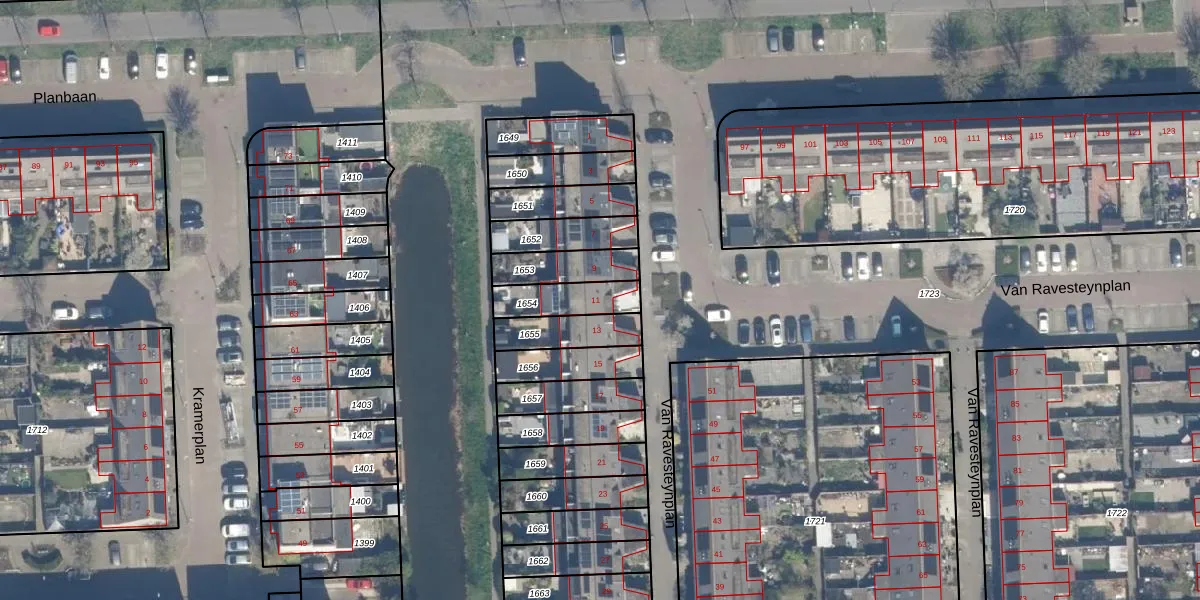 Gebruik de zoekbalk of klik op een perceel voor informatie over de adressen binnen dit perceel.