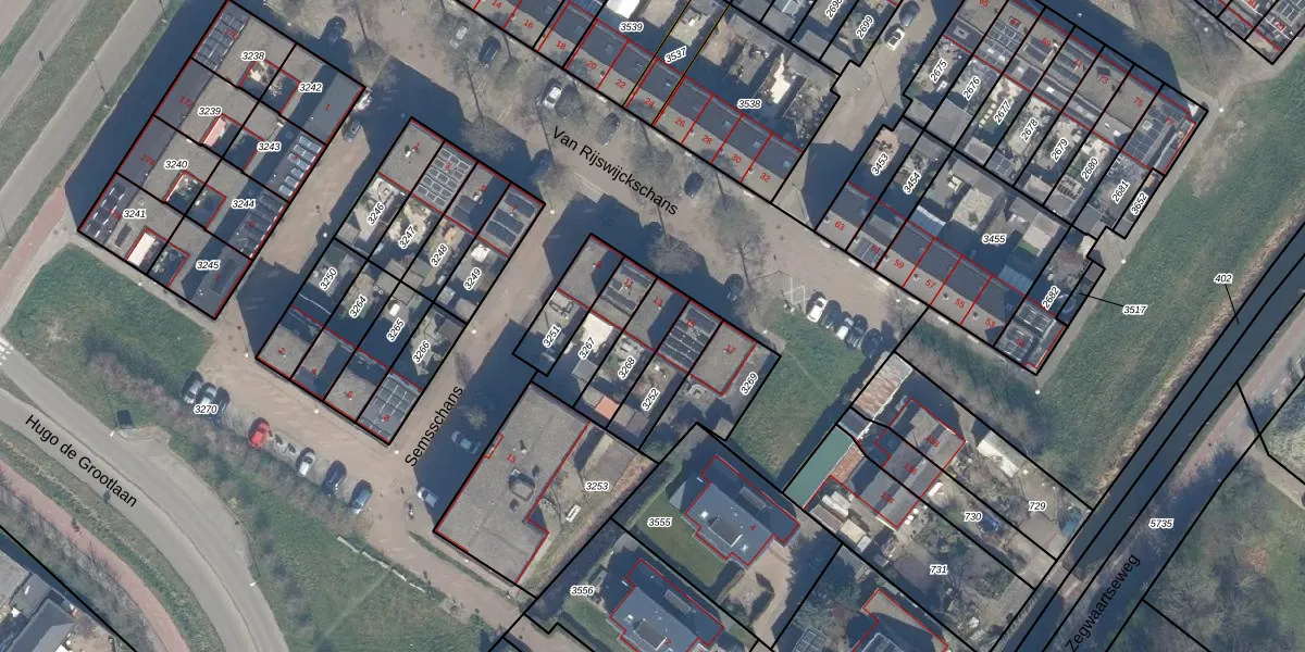 Gebruik de zoekbalk of klik op een perceel voor informatie over de adressen binnen dit perceel.