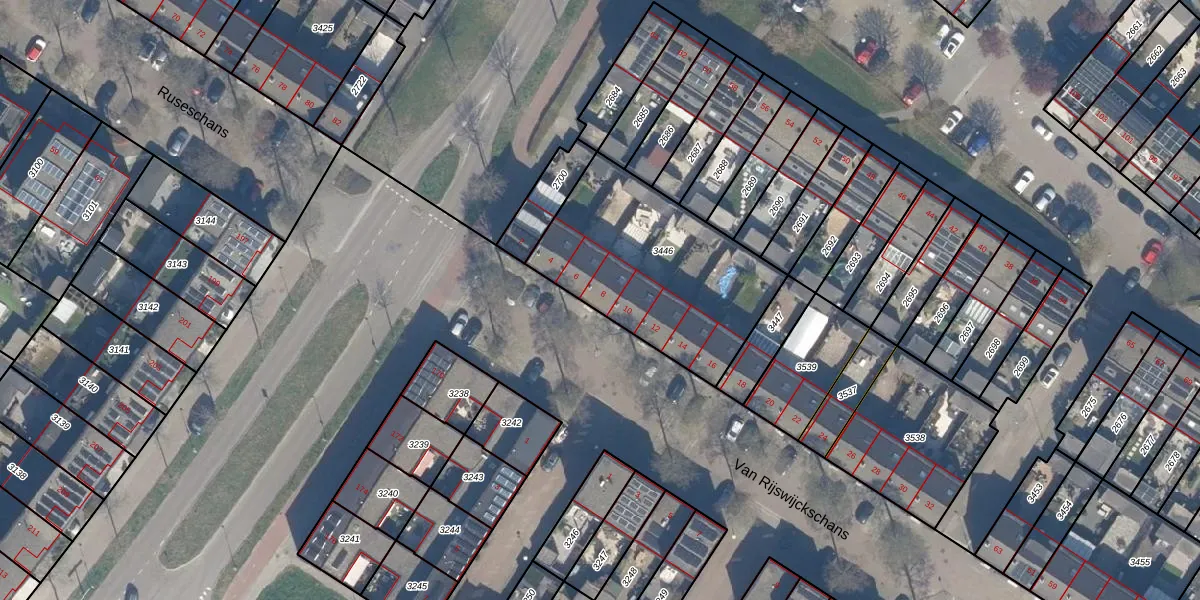 Het perceel waarop Van Rijswijckschans 8 staat heeft een oppervlakte van 842 m². Dit is een groot perceel. De perceeloppervlakte wordt geregistreerd door het Kadaster. Gedetailleerde informatie over de maten van dit perceel kunt u vinden in het rapport Kadastrale kaart met maatvoering van Van Rijswijckschans 8.