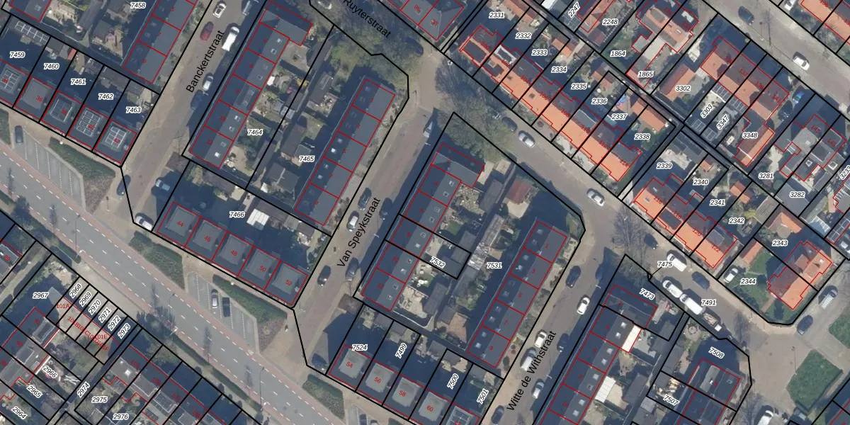 Het perceel waarop Van Speykstraat 6 staat heeft een oppervlakte van 1858 m². Dit is een zeer groot perceel. De perceeloppervlakte wordt geregistreerd door het Kadaster. Gedetailleerde informatie over de maten van dit perceel kunt u vinden in het rapport Kadastrale kaart met maatvoering van Van Speykstraat 6.