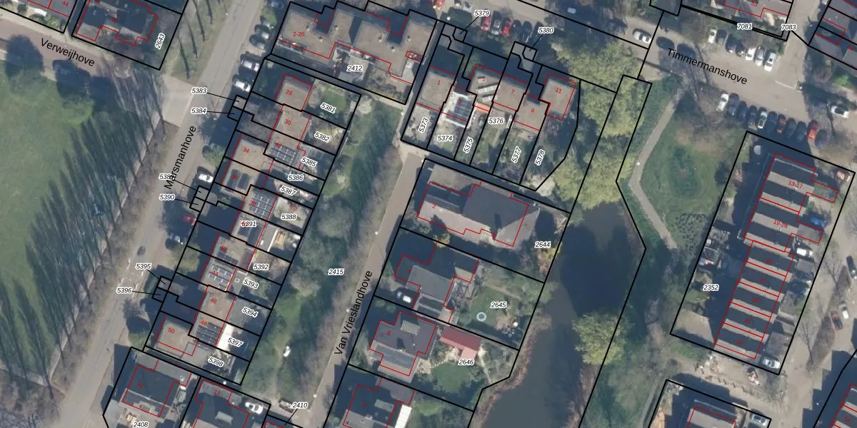 Het perceel waarop Van Vrieslandhove 2 staat heeft een oppervlakte van 621 m². Dit is een groot perceel. De perceeloppervlakte wordt geregistreerd door het Kadaster. Gedetailleerde informatie over de maten van dit perceel kunt u vinden in het rapport Kadastrale kaart met maatvoering van Van Vrieslandhove 2.