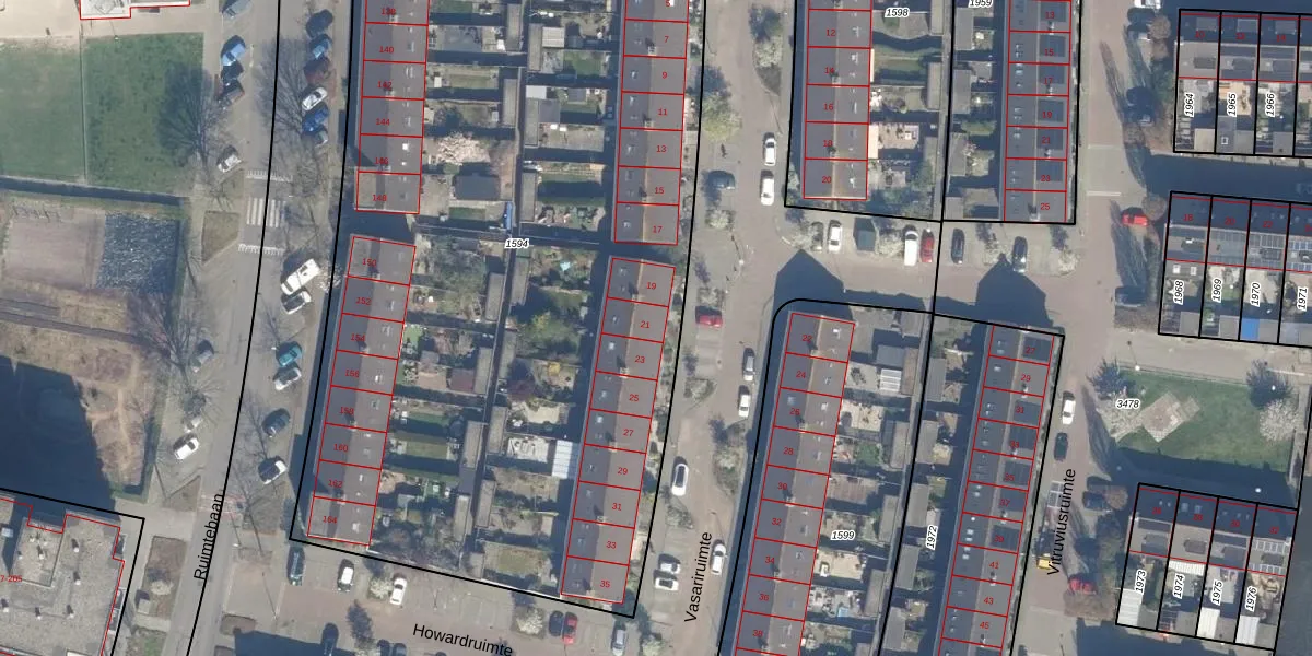 Het perceel waarop Vasariruimte 21 staat heeft een oppervlakte van 5615 m². Dit is een zeer groot perceel. De perceeloppervlakte wordt geregistreerd door het Kadaster. Gedetailleerde informatie over de maten van dit perceel kunt u vinden in het rapport Kadastrale kaart met maatvoering van Vasariruimte 21.