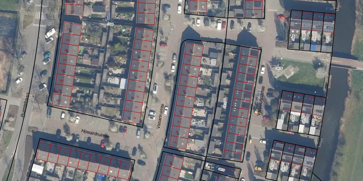 Het perceel waarop Vasariruimte 30 staat heeft een oppervlakte van 1540 m². Dit is een zeer groot perceel. De perceeloppervlakte wordt geregistreerd door het Kadaster. Gedetailleerde informatie over de maten van dit perceel kunt u vinden in het rapport Kadastrale kaart met maatvoering van Vasariruimte 30.