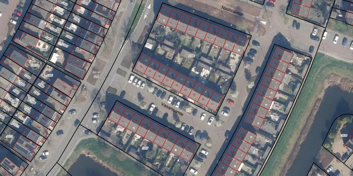 Het perceel waarop Vasariruimte 45 staat heeft een oppervlakte van 2490 m². Dit is een zeer groot perceel. De perceeloppervlakte wordt geregistreerd door het Kadaster. Gedetailleerde informatie over de maten van dit perceel kunt u vinden in het rapport Kadastrale kaart met maatvoering van Vasariruimte 45.