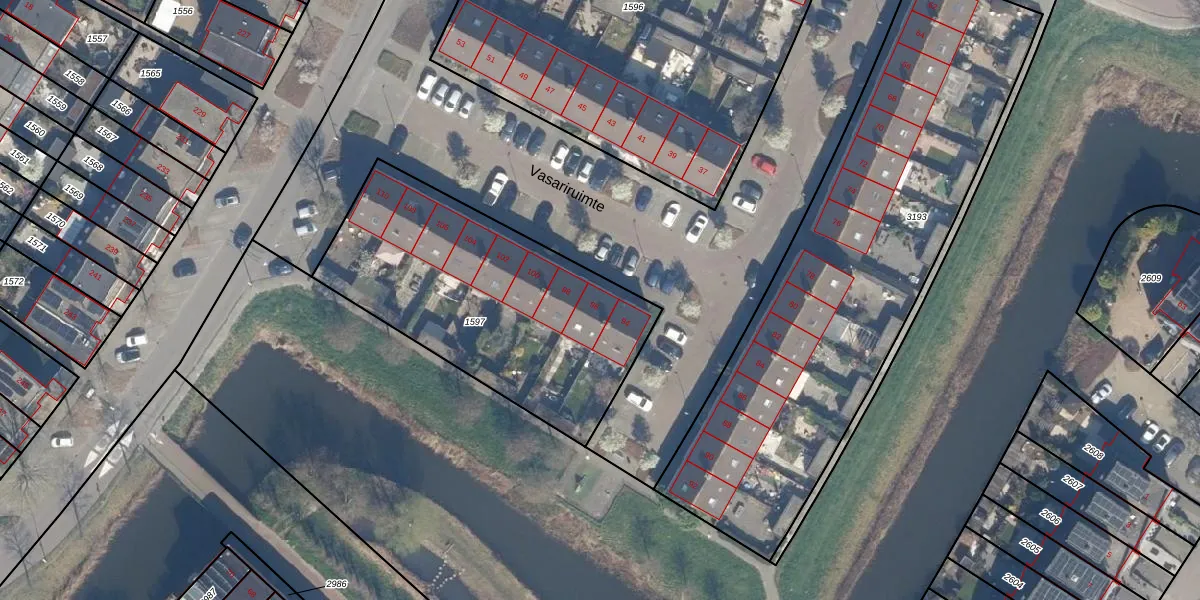 Het perceel waarop Vasariruimte 96 staat heeft een oppervlakte van 1315 m². Dit is een zeer groot perceel. De perceeloppervlakte wordt geregistreerd door het Kadaster. Gedetailleerde informatie over de maten van dit perceel kunt u vinden in het rapport Kadastrale kaart met maatvoering van Vasariruimte 96.