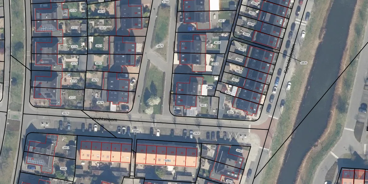 Gebruik de zoekbalk of klik op een perceel voor informatie over de adressen binnen dit perceel.