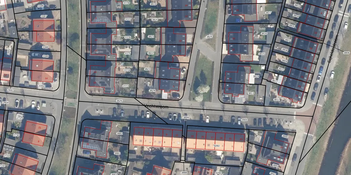 Gebruik de zoekbalk of klik op een perceel voor informatie over de adressen binnen dit perceel.