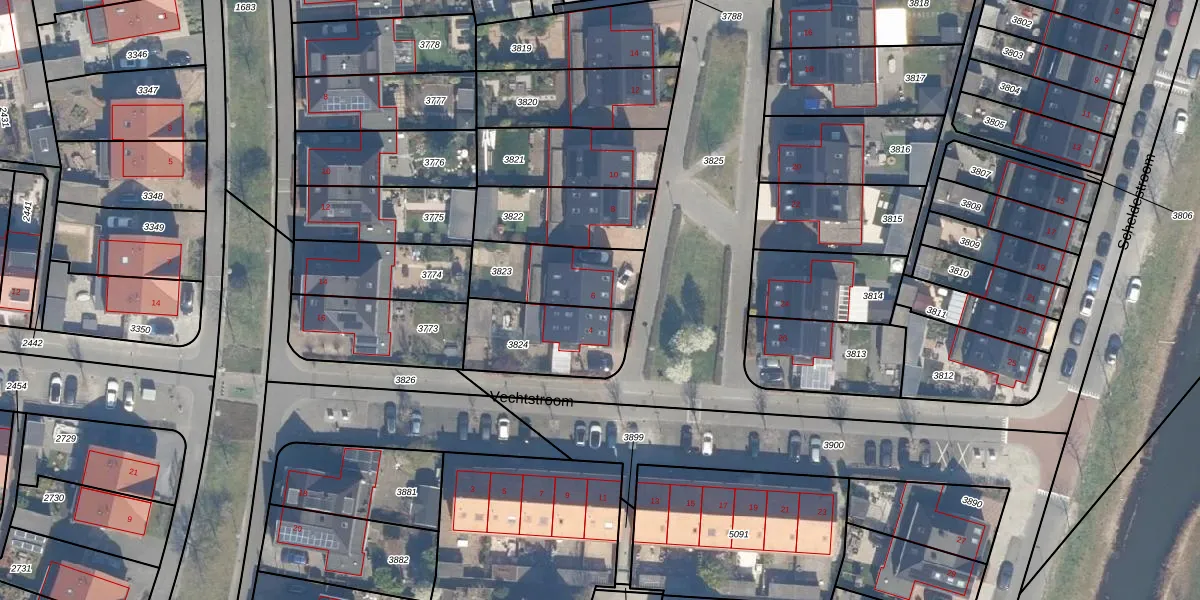 Gebruik de zoekbalk of klik op een perceel voor informatie over de adressen binnen dit perceel.