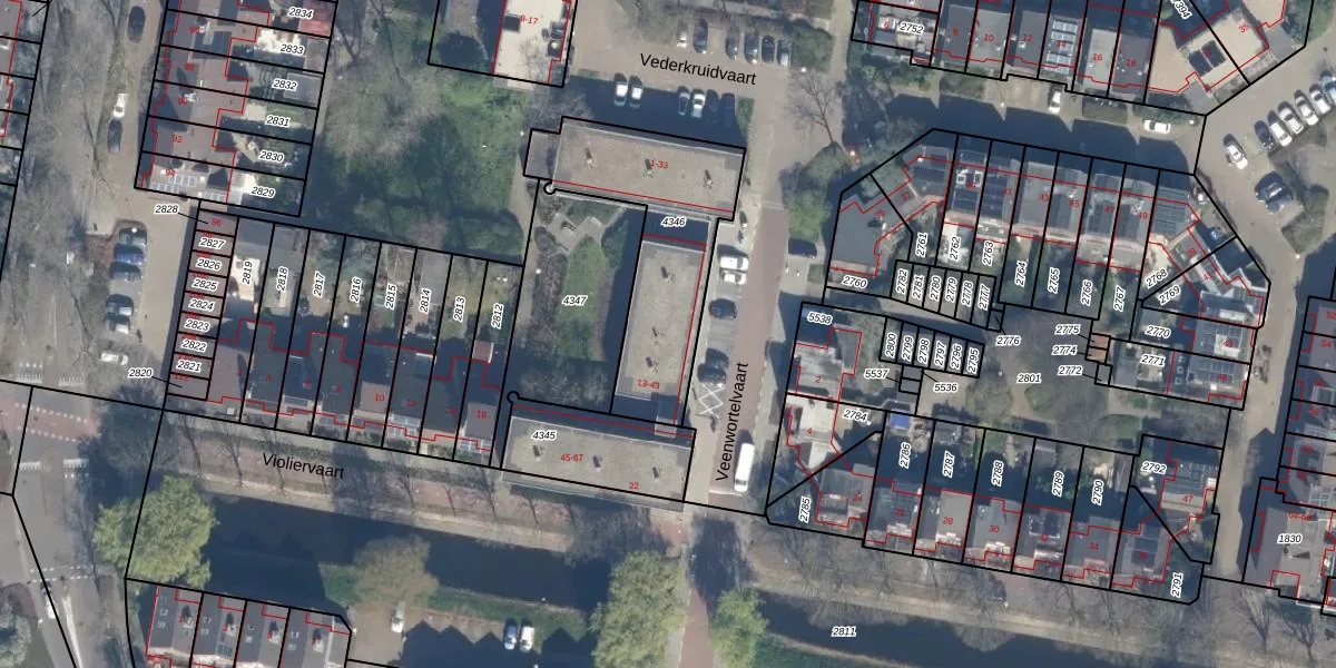 Het perceel waarop Veenwortelvaart 39 staat heeft een oppervlakte van 683 m². Dit is een groot perceel. De perceeloppervlakte wordt geregistreerd door het Kadaster. Gedetailleerde informatie over de maten van dit perceel kunt u vinden in het rapport Kadastrale kaart met maatvoering van Veenwortelvaart 39.