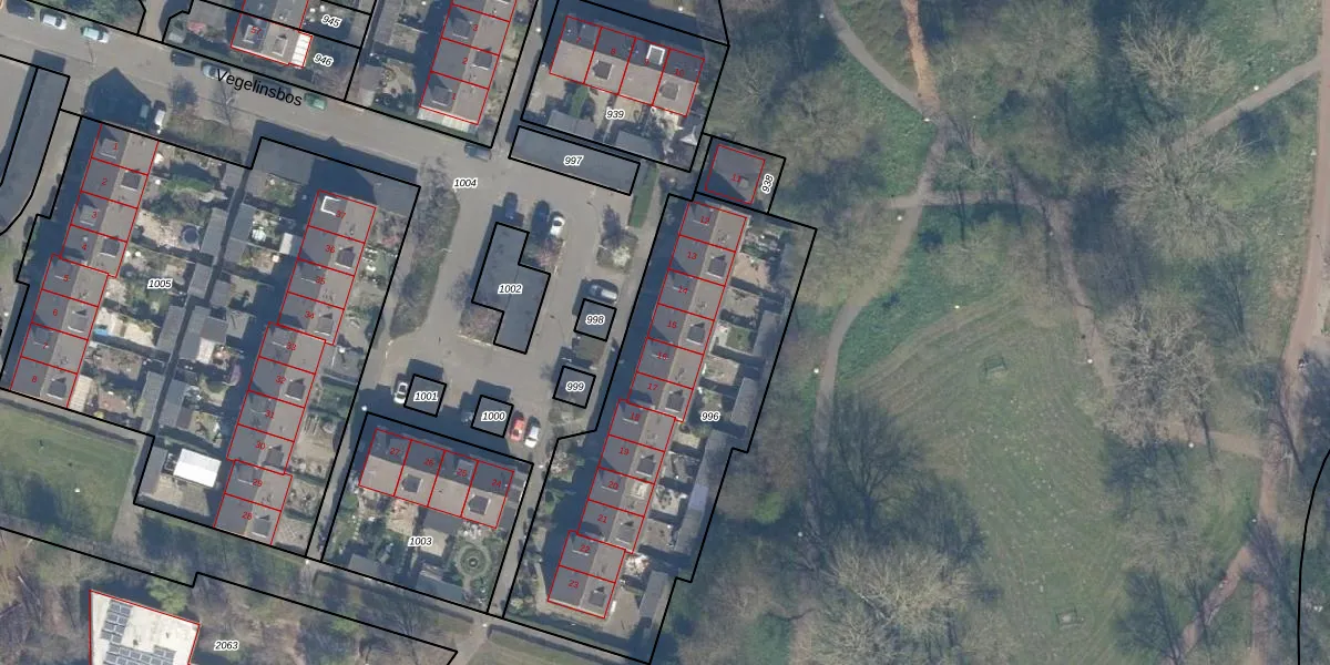 Het perceel waarop Vegelinsbos 15 staat heeft een oppervlakte van 1523 m². Dit is een zeer groot perceel. De perceeloppervlakte wordt geregistreerd door het Kadaster. Gedetailleerde informatie over de maten van dit perceel kunt u vinden in het rapport Kadastrale kaart met maatvoering van Vegelinsbos 15.