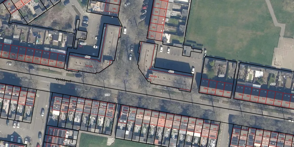 Velddreef 290 is gelegen op kadastraal perceel ZWD01B4032. Deze kadastrale aanduiding is uniek en wordt gebruikt door het Kadaster om eigendomsrechten en andere zakelijke rechten vast te leggen. Het perceel maakt onderdeel uit van de kadastrale gemeente Zegwaard.