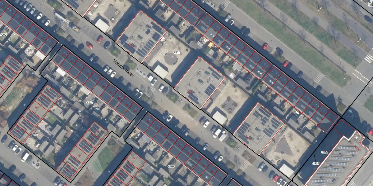 Het perceel waarop Veluwemeer 52 staat heeft een oppervlakte van 8452 m². Dit is een zeer groot perceel. De perceeloppervlakte wordt geregistreerd door het Kadaster. Gedetailleerde informatie over de maten van dit perceel kunt u vinden in het rapport Kadastrale kaart met maatvoering van Veluwemeer 52.