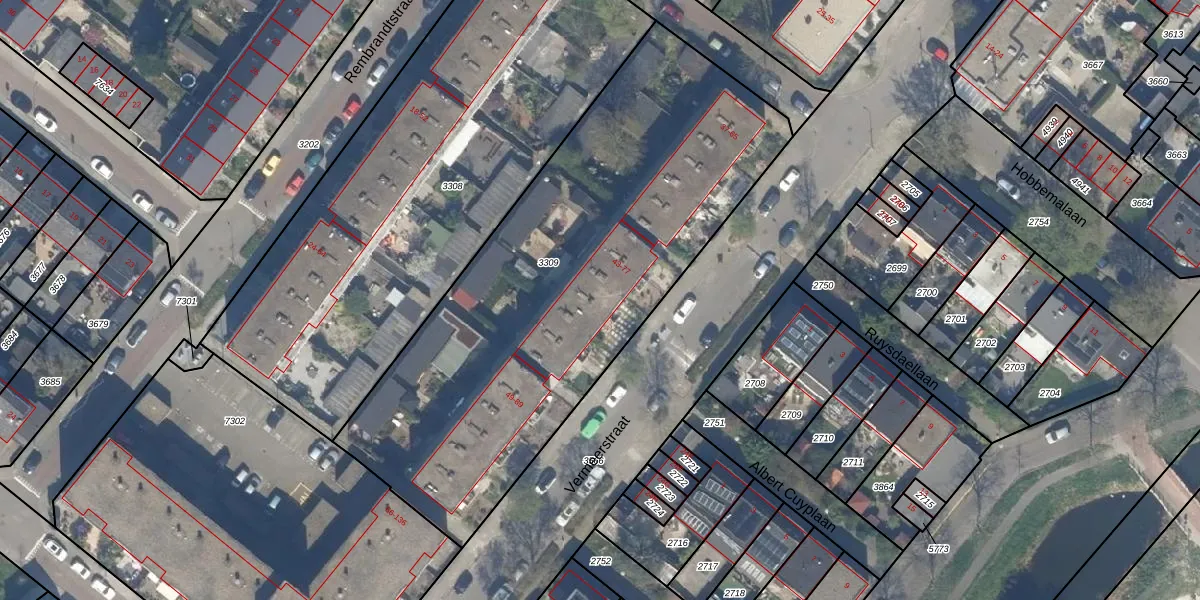 Het perceel waarop Vermeerstraat 71 staat heeft een oppervlakte van 2566 m². Dit is een zeer groot perceel. De perceeloppervlakte wordt geregistreerd door het Kadaster. Gedetailleerde informatie over de maten van dit perceel kunt u vinden in het rapport Kadastrale kaart met maatvoering van Vermeerstraat 71.