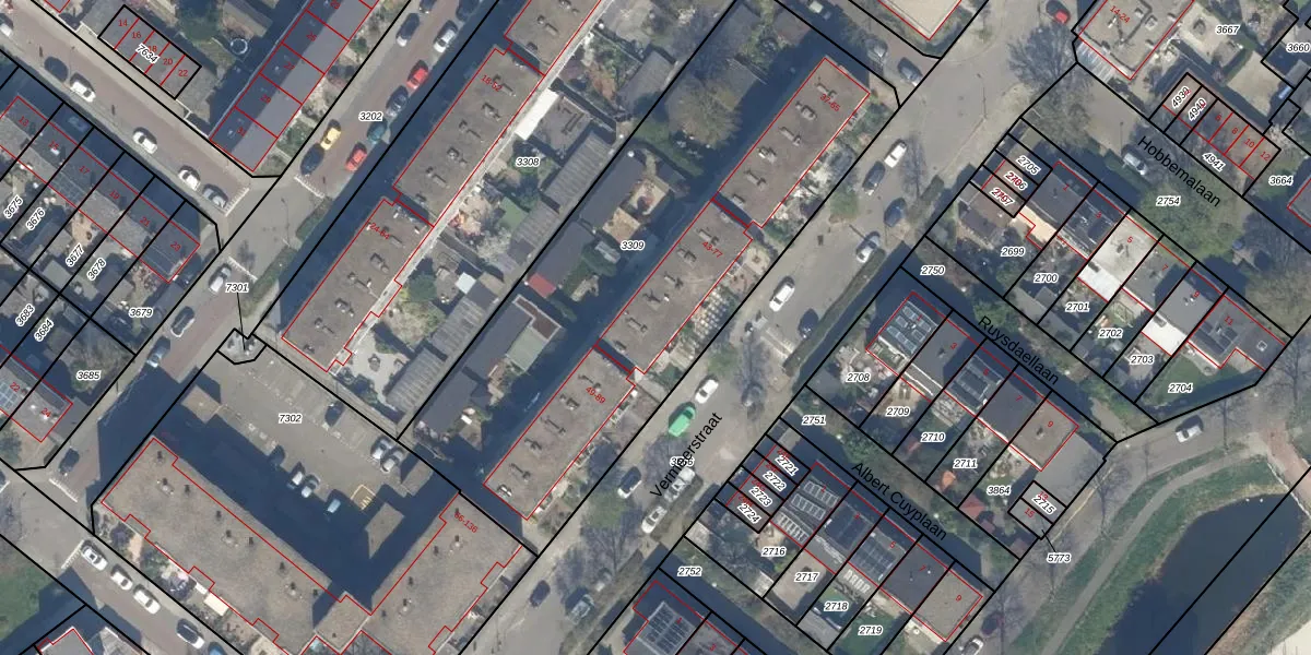 Het perceel waarop Vermeerstraat 75 staat heeft een oppervlakte van 2566 m². Dit is een zeer groot perceel. De perceeloppervlakte wordt geregistreerd door het Kadaster. Gedetailleerde informatie over de maten van dit perceel kunt u vinden in het rapport Kadastrale kaart met maatvoering van Vermeerstraat 75.