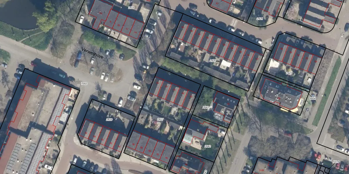 Het perceel waarop Verweijhove 20 staat heeft een oppervlakte van 1379 m². Dit is een zeer groot perceel. De perceeloppervlakte wordt geregistreerd door het Kadaster. Gedetailleerde informatie over de maten van dit perceel kunt u vinden in het rapport Kadastrale kaart met maatvoering van Verweijhove 20.