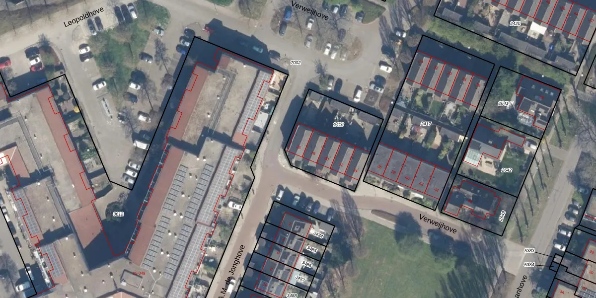 Het perceel waarop Verweijhove 26 staat heeft een oppervlakte van 695 m². Dit is een groot perceel. De perceeloppervlakte wordt geregistreerd door het Kadaster. Gedetailleerde informatie over de maten van dit perceel kunt u vinden in het rapport Kadastrale kaart met maatvoering van Verweijhove 26.