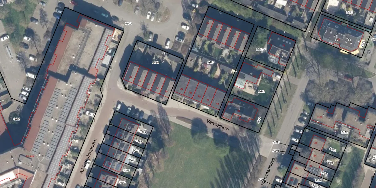 Het perceel waarop Verweijhove 38 staat heeft een oppervlakte van 1379 m². Dit is een zeer groot perceel. De perceeloppervlakte wordt geregistreerd door het Kadaster. Gedetailleerde informatie over de maten van dit perceel kunt u vinden in het rapport Kadastrale kaart met maatvoering van Verweijhove 38.