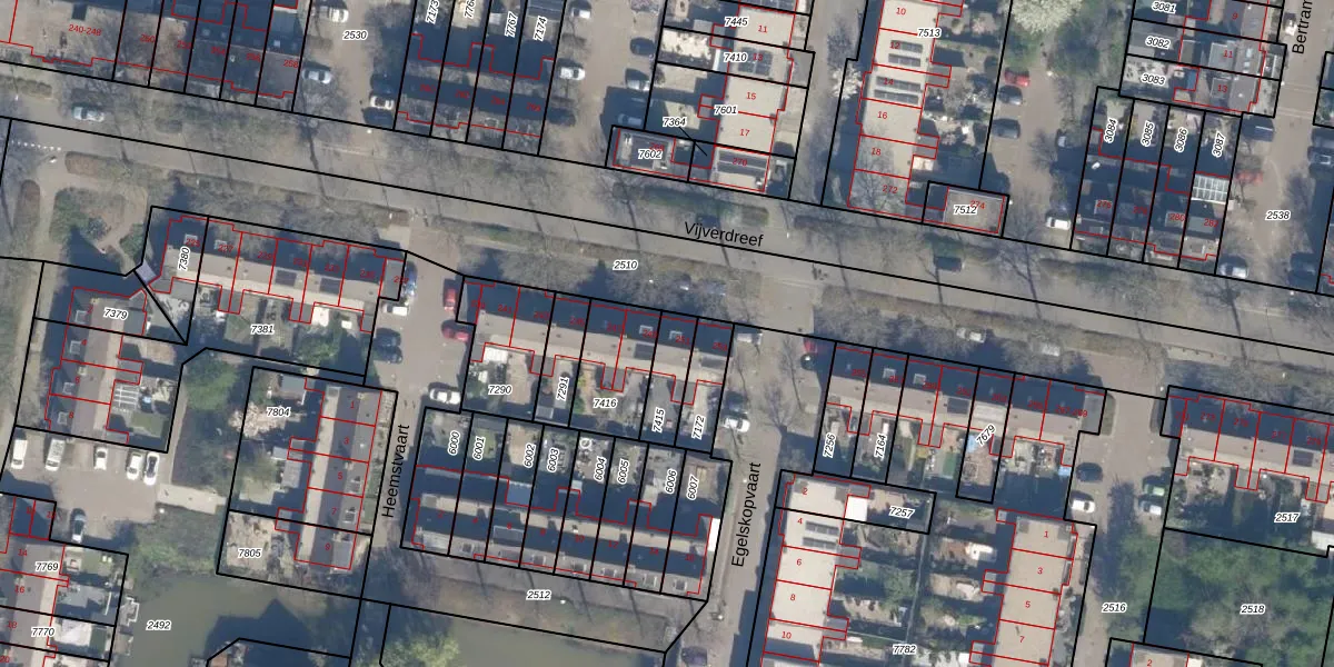 Gebruik de zoekbalk of klik op een perceel voor informatie over de adressen binnen dit perceel.