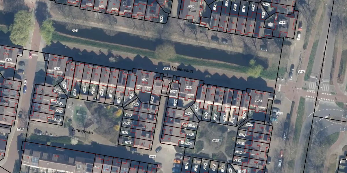 Het perceel waarop Violiervaart 55 staat heeft een oppervlakte van 91 m². Dit is een klein perceel. De perceeloppervlakte wordt geregistreerd door het Kadaster. Gedetailleerde informatie over de maten van dit perceel kunt u vinden in het rapport Kadastrale kaart met maatvoering van Violiervaart 55.