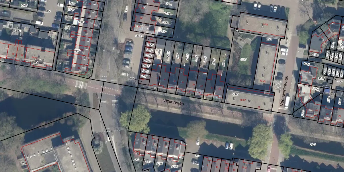 Gebruik de zoekbalk of klik op een perceel voor informatie over de adressen binnen dit perceel.