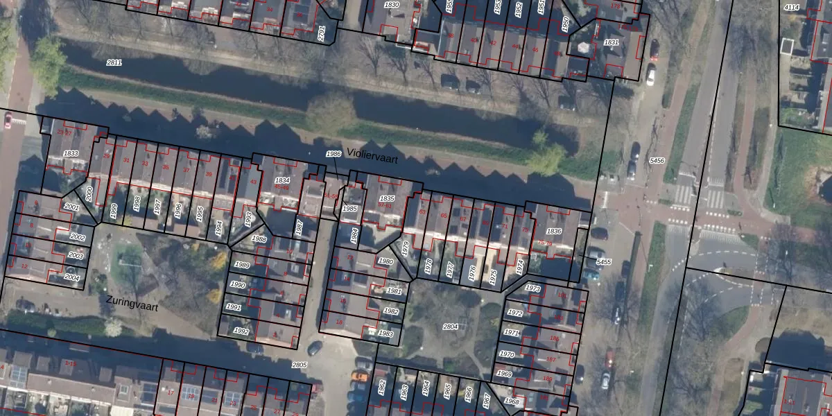 Gebruik de zoekbalk of klik op een perceel voor informatie over de adressen binnen dit perceel.