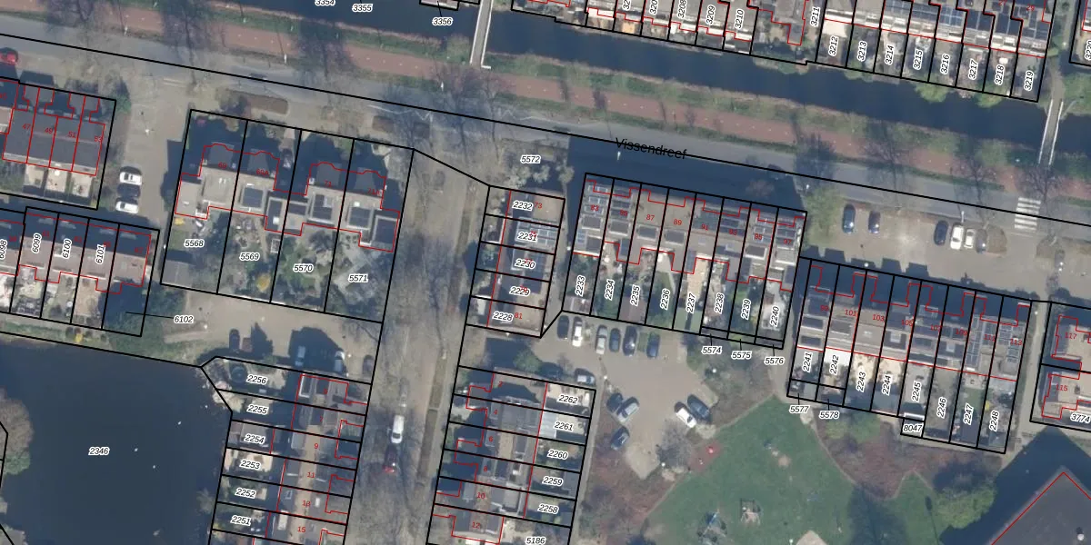 Gebruik de zoekbalk of klik op een perceel voor informatie over de adressen binnen dit perceel.