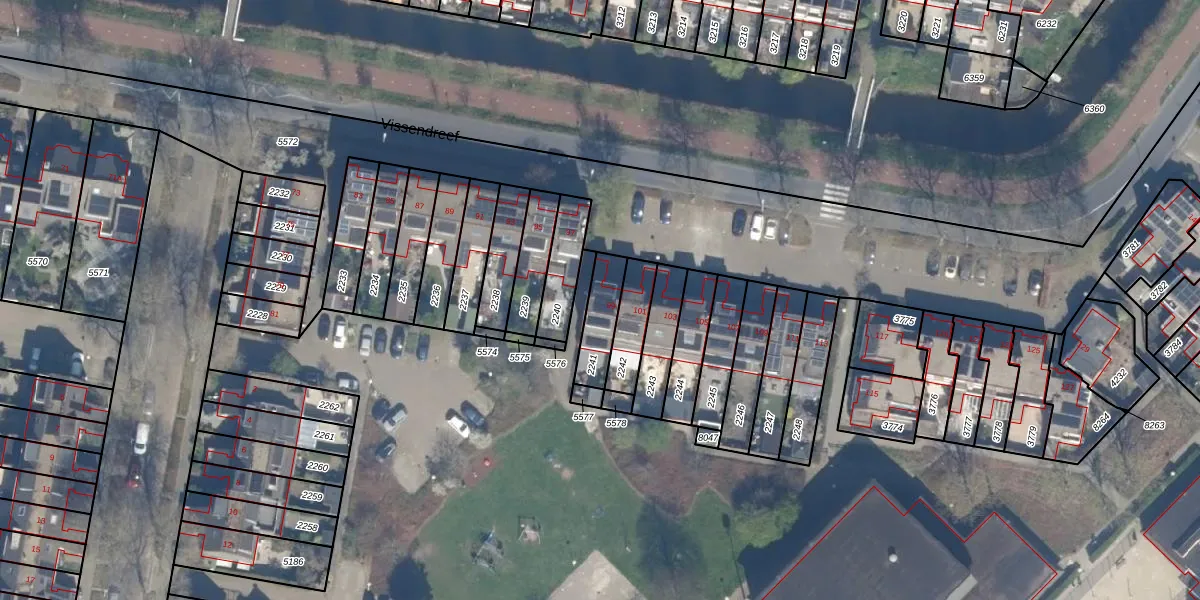 Vissendreef 99 is gelegen op kadastraal perceel ZWD01B2241. Deze kadastrale aanduiding is uniek en wordt gebruikt door het Kadaster om eigendomsrechten en andere zakelijke rechten vast te leggen. Het perceel maakt onderdeel uit van de kadastrale gemeente Zegwaard.