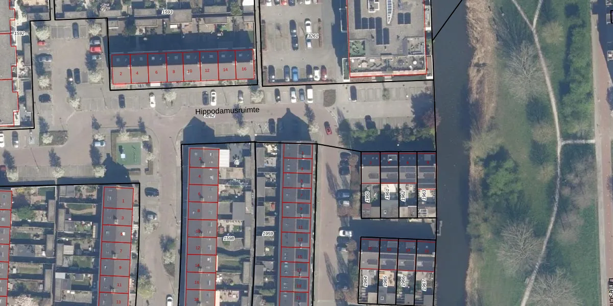 Het perceel waarop Vitruviusruimte 1 staat heeft een oppervlakte van 1241 m². Dit is een zeer groot perceel. De perceeloppervlakte wordt geregistreerd door het Kadaster. Gedetailleerde informatie over de maten van dit perceel kunt u vinden in het rapport Kadastrale kaart met maatvoering van Vitruviusruimte 1.