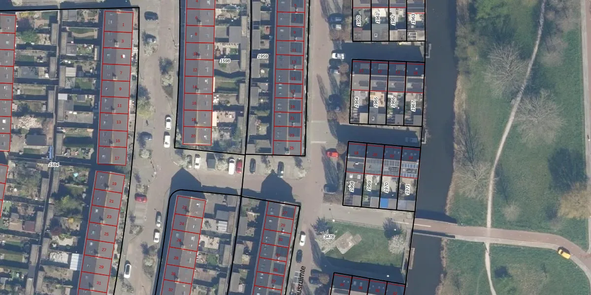 Het perceel waarop Vitruviusruimte 25 staat heeft een oppervlakte van 1241 m². Dit is een zeer groot perceel. De perceeloppervlakte wordt geregistreerd door het Kadaster. Gedetailleerde informatie over de maten van dit perceel kunt u vinden in het rapport Kadastrale kaart met maatvoering van Vitruviusruimte 25.