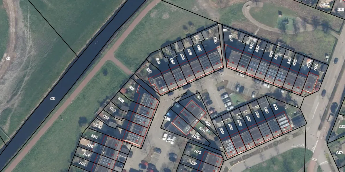 Het perceel waarop Vletkade 34 staat heeft een oppervlakte van 176 m². Dit is een middelgroot perceel. De perceeloppervlakte wordt geregistreerd door het Kadaster. Gedetailleerde informatie over de maten van dit perceel kunt u vinden in het rapport Kadastrale kaart met maatvoering van Vletkade 34.
