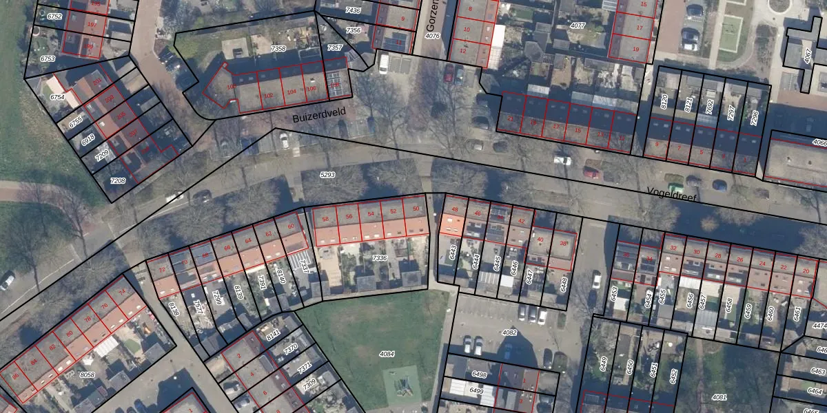 Het perceel waarop Vogeldreef 50 staat heeft een oppervlakte van 645 m². Dit is een groot perceel. De perceeloppervlakte wordt geregistreerd door het Kadaster. Gedetailleerde informatie over de maten van dit perceel kunt u vinden in het rapport Kadastrale kaart met maatvoering van Vogeldreef 50.