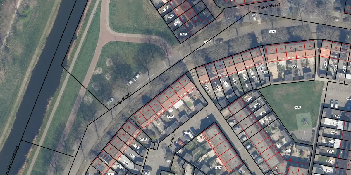 Het perceel waarop Vogeldreef 76 staat heeft een oppervlakte van 869 m². Dit is een groot perceel. De perceeloppervlakte wordt geregistreerd door het Kadaster. Gedetailleerde informatie over de maten van dit perceel kunt u vinden in het rapport Kadastrale kaart met maatvoering van Vogeldreef 76.
