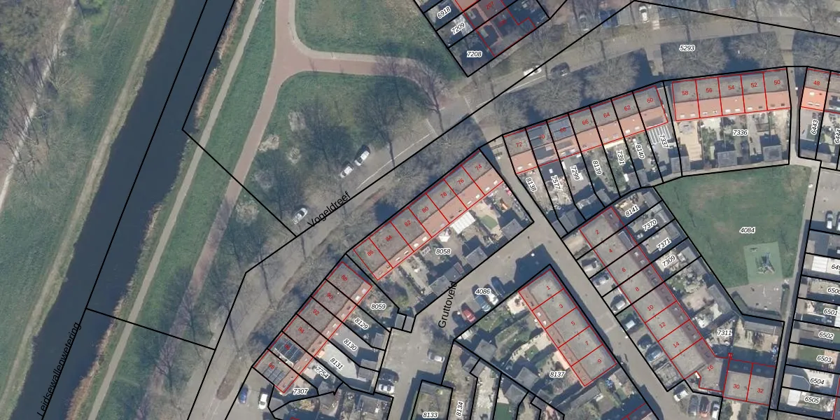 Het perceel waarop Vogeldreef 80 staat heeft een oppervlakte van 869 m². Dit is een groot perceel. De perceeloppervlakte wordt geregistreerd door het Kadaster. Gedetailleerde informatie over de maten van dit perceel kunt u vinden in het rapport Kadastrale kaart met maatvoering van Vogeldreef 80.