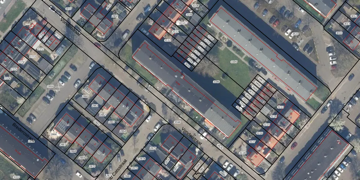 Het perceel waarop Vondelstraat 24 staat heeft een oppervlakte van 1932 m². Dit is een zeer groot perceel. De perceeloppervlakte wordt geregistreerd door het Kadaster. Gedetailleerde informatie over de maten van dit perceel kunt u vinden in het rapport Kadastrale kaart met maatvoering van Vondelstraat 24.