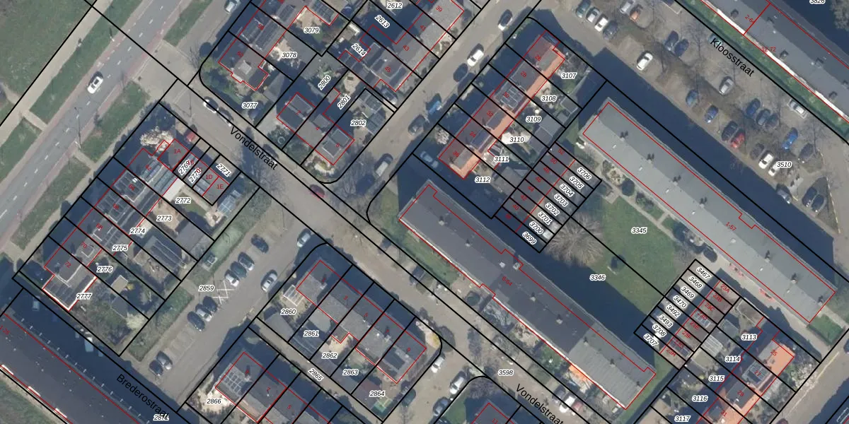 Het perceel waarop Vondelstraat 34 staat heeft een oppervlakte van 1932 m². Dit is een zeer groot perceel. De perceeloppervlakte wordt geregistreerd door het Kadaster. Gedetailleerde informatie over de maten van dit perceel kunt u vinden in het rapport Kadastrale kaart met maatvoering van Vondelstraat 34.