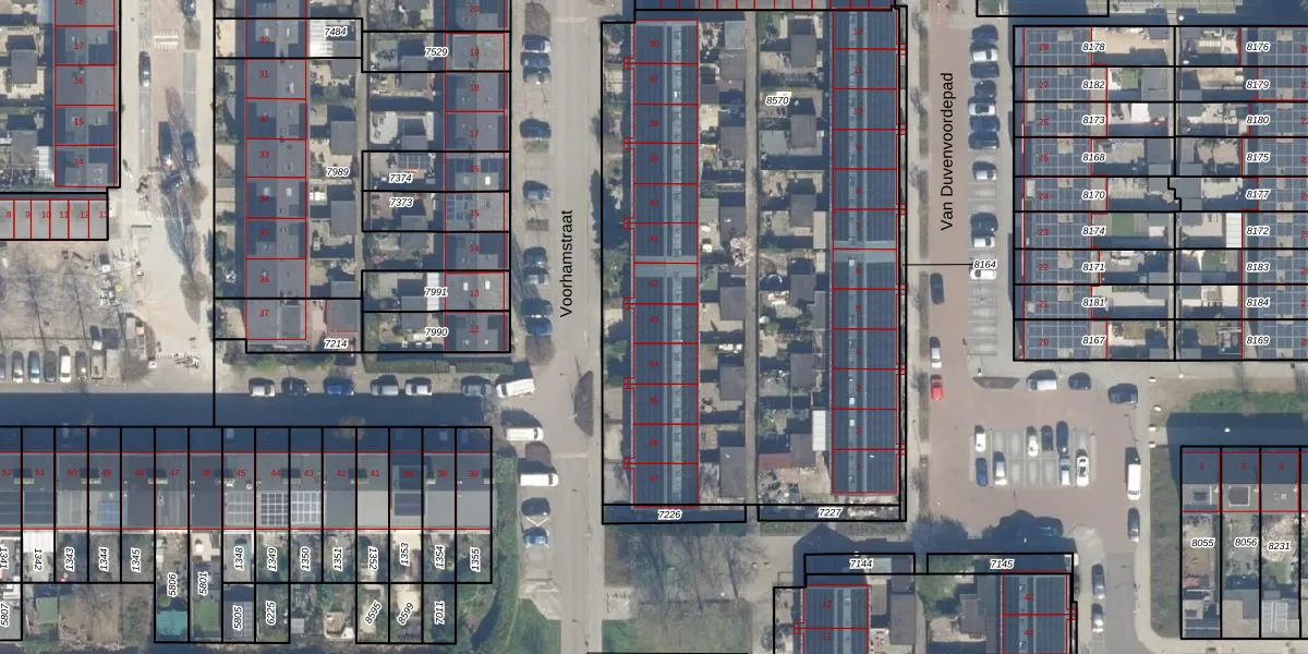 Het perceel waarop Voorhamstraat 43 staat heeft een oppervlakte van 3424 m². Dit is een zeer groot perceel. De perceeloppervlakte wordt geregistreerd door het Kadaster. Gedetailleerde informatie over de maten van dit perceel kunt u vinden in het rapport Kadastrale kaart met maatvoering van Voorhamstraat 43.
