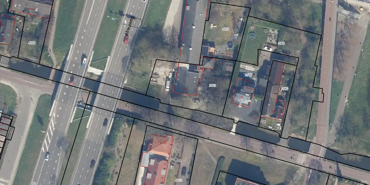 Het perceel waarop Voorweg 54 staat heeft een oppervlakte van 1093 m². Dit is een zeer groot perceel. De perceeloppervlakte wordt geregistreerd door het Kadaster. Gedetailleerde informatie over de maten van dit perceel kunt u vinden in het rapport Kadastrale kaart met maatvoering van Voorweg 54.
