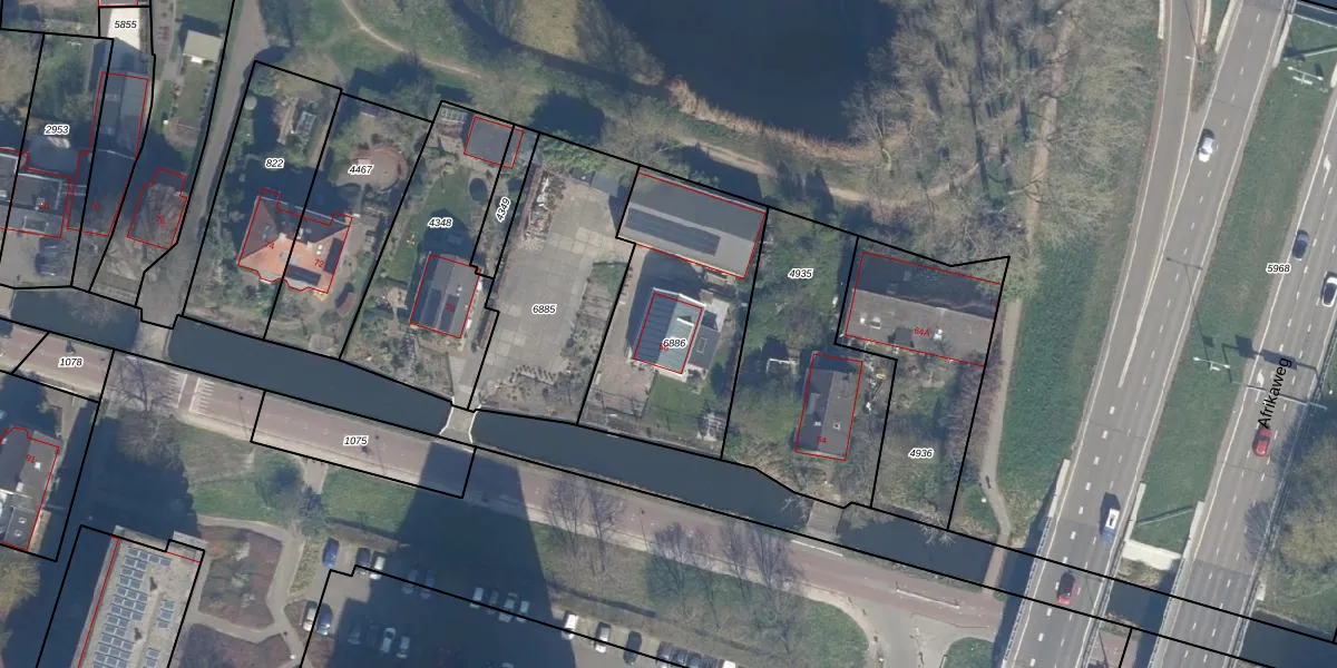 Het perceel waarop Voorweg 66 staat heeft een oppervlakte van 812 m². Dit is een groot perceel. De perceeloppervlakte wordt geregistreerd door het Kadaster. Gedetailleerde informatie over de maten van dit perceel kunt u vinden in het rapport Kadastrale kaart met maatvoering van Voorweg 66.