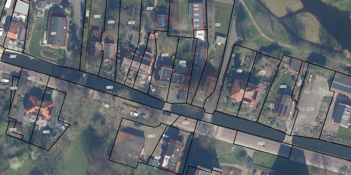 Het perceel waarop Voorweg 80 staat heeft een oppervlakte van 425 m². Dit is een groot perceel. De perceeloppervlakte wordt geregistreerd door het Kadaster. Gedetailleerde informatie over de maten van dit perceel kunt u vinden in het rapport Kadastrale kaart met maatvoering van Voorweg 80.