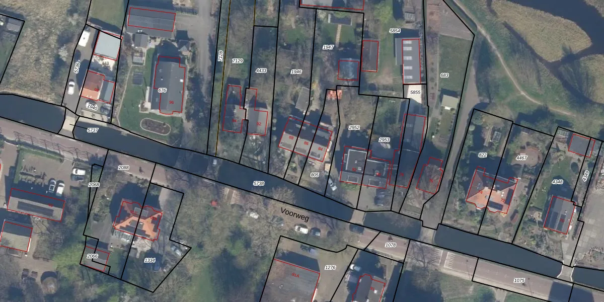 Het perceel waarop Voorweg 86 staat heeft een oppervlakte van 580 m². Dit is een groot perceel. De perceeloppervlakte wordt geregistreerd door het Kadaster. Gedetailleerde informatie over de maten van dit perceel kunt u vinden in het rapport Kadastrale kaart met maatvoering van Voorweg 86.